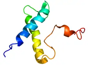 - ↑ PDB: 1VZS; Carbajo RJ, Silvester JA, Runswick MJ, Walker JE, Neuhaus D (September 2004). "Solution structure of subunit F(6) from the peripheral stalk region of ATP synthase from bovine heart mitochondria". Journal of Molecular Biology. 342 (2): 593–603. doi:10.1016/j.jmb.2004.07.013. PMID 15327958.