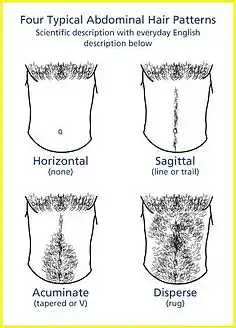 - ↑ Setty LR (May 1966). "Varieties of the acuminate abdominal hair pattern of white males". J Natl Med Assoc. 58 (3): 191–3. PMC 2611109. PMID 5932294.