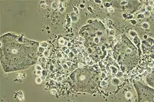 - ↑ Donders, G.G.G.; Larsson, P.G.; Platz-Christensen, J.J.; Hallén, A.; van der Meijden, W.; Wölner-Hanssen, P. (2009). "Variability in diagnosis of clue cells, lactobacillary grading and white blood cells in vaginal wet smears with conventional bright light and phase contrast microscopy". European Journal of Obstetrics & Gynecology and Reproductive Biology. 145 (1): 109–12. doi:10.1016/j.ejogrb.2009.04.012. PMID 19481329.