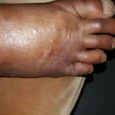 Ainhum (from Portuguese, pronounced īn-yoom´, i´num or ān´hum;[1] also known as dactylolysis spontanea[2]) is a painful constriction of the base of the fifth toe frequently followed by bilateral spontaneous autoamputation a few years later.