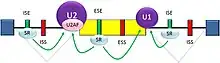 - 1 2 3 4 Wang Z, Burge CB (May 2008). "Splicing regulation: from a parts list of regulatory elements to an integrated splicing code" (Free full text). RNA. 14 (5): 802–13. doi:10.1261/rna.876308. PMC 2327353. PMID 18369186.