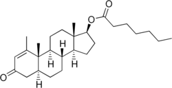 The AAS that have been used most commonly in medicine are testosterone and its many esters (but most typically testosterone undecanoate, testosterone enanthate, testosterone cypionate, and testosterone propionate),[72] nandrolone esters (typically nandrolone decanoate and nandrolone phenylpropionate), stanozolol, and metandienone (methandrostenolone).[73] Others that have also been available and used commonly but to a lesser extent include methyltestosterone, oxandrolone, mesterolone, and oxymetholone, as well as drostanolone propionate (dromostanolone propionate), metenolone (methylandrostenolone) esters (specifically metenolone acetate and metenolone enanthate), and fluoxymesterone.[73] Dihydrotestosterone (DHT), known as androstanolone or stanolone when used medically, and its esters are also notable, although they are not widely used in medicine.[68] Boldenone undecylenate and trenbolone acetate are used in veterinary medicine.[73]