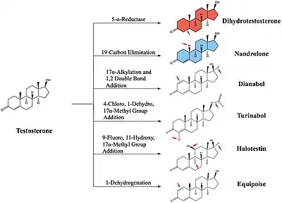 - ↑ Bond P, Smit DL, de Ronde W (2022). "Anabolic-androgenic steroids: How do they work and what are the risks?". Front Endocrinol (Lausanne). 13: 1059473. doi:10.3389/fendo.2022.1059473. PMC 9837614. PMID 36644692.