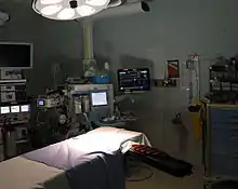 The core instrument in an inhalational anesthetic delivery system is an anesthetic machine. It has vaporizers, ventilators, an anesthetic breathing circuit, waste gas scavenging system and pressure gauges. The purpose of the anesthetic machine is to provide anesthetic gas at a constant pressure, oxygen for breathing and to remove carbon dioxide or other waste anesthetic gases. Since inhalational anesthetics are flammable, various checklists have been developed to confirm that the machine is ready for use, that the safety features are active and the electrical hazards are removed.[5] Intravenous anesthetic is delivered either by bolus doses or an infusion pump. There are also many smaller instruments used in airway management and monitoring the patient. The common thread to modern machinery in this field is the use of fail-safe systems that decrease the odds of catastrophic misuse of the machine.[6]