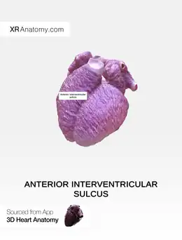 The anterior interventricular sulcus (or anterior longitudinal sulcus) is one of two grooves separating the ventricles of the heart (the other being the posterior interventricular sulcus). They can also be known as paraconal interventricular groove or subsinosal interventricular groove respectively. It is situated on the sternocostal surface of the heart,[1][2] close to the left margin of the heart.[2] It extends between the coronary sulcus, and the apex of the heart;[1] upon reaching the diaphragmatic surface of the heart, it ends at the notch of cardiac apex.[3] It contains the anterior interventricular branch of the left coronary artery, and great cardiac vein.[1][2]