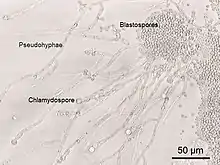 - ↑ Sendid B, Dotan N, Nseir S, Savaux C, Vandewalle P, Standaert A, Zerimech F, Guery BP, Dukler A, Colombel JF, Poulain D (December 2008). "Antibodies against Glucan, Chitin, and Saccharomyces cerevisiae Mannan as New Biomarkers of Candida albicans Infection That Complement Tests Based on C. albicans Mannan". Clinical and Vaccine Immunology. 15 (12): 1868–1877. doi:10.1128/CVI.00200-08. PMC 2593178. PMID 18971303.