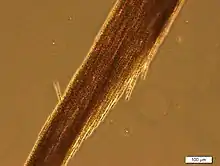 Aphanizomenon is a genus of cyanobacteria that inhabits freshwater lakes and can cause dense blooms. They are unicellular organisms that consolidate into linear (non-branching) chains called trichomes. Parallel trichomes can then further unite into aggregates called rafts.[1] Cyanobacteria such as Aphanizomenon are known for using photosynthesis to create energy and therefore use sunlight as their energy source.[2] Aphanizomenon bacteria also play a big role in the Nitrogen cycle since they can perform nitrogen fixation. Studies on the species Aphanizomenon flos-aquae have shown that it can regulate buoyancy through light-induced changes in turgor pressure.[3] It is also able to move by means of gliding, though the specific mechanism by which this is possible is not yet known.