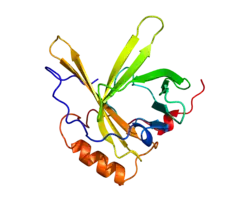 ApoD concentration in human plasma varies between 5 and 23 mg/100 ml.[30] In the nervous system, the ApoD mRNA is expressed by fibroblasts, astrocytes and oligodendrocytes[31][32][33] As a glycoprotein with a peptide signal, ApoD is secreted. Yet it can also be actively reinternalized. The transmembrane glycoprotein Basigin (BSG; CD147) was identified as an ApoD receptor.[34] BSG is a membrane glycoprotein receptor, member of the immunoglobulin family, involved in several pathologies such as cancer and Alzheimer's disease.[35]