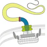 The bacterial flagellum is a protein-nanomachine that converts electrochemical energy in the form of a gradient of H+ or Na+ ions into mechanical work.[26][27][28] The flagellum is composed of three parts: the basal body, the hook, and the filament. The basal body is a reversible motor that spans the bacterial cell envelope. It is composed of the central rod and several rings: in Gram-negative bacteria, these are the outer L-ring (lipopolysaccharide) and P-ring (peptidoglycan), and the inner MS-ring (membrane/supramembrane) and C-ring (cytoplasmic). In Gram-positive bacteria only the inner rings are present.[29] The Mot proteins (MotA and MotB) surround the inner rings in the cytoplasmic membrane; ion translocation through the Mot proteins provide the energy for flagella rotation.[26] The Fli proteins allow reversal of the direction of rotation of the flagella in response to specific stimuli.[30][31] The hook connects the filament to the motor protein in the base. The helical filament is composed of many copies of the protein flagellin, and it can rotate clockwise (CW) and counterclockwise (CCW).[32][33][34][35][3]