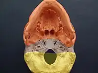 Base of the skull, exterior or outer surface. Showing various muscle attachments.