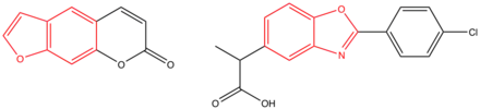 The observed skin phototoxicity of patients treated with benoxaprofen can be explained with a look at the structure of the compound. There are significant structural similarities between the benzoxazole ring of benoxaprofen and the benzofuran ring of psoralen, a compound known to be phototoxic. The free decarboxylated derivate of the drug can produce singlet oxygen and superoxide anions in the presence of oxygen. Furthermore, possible explanations for the photochemical decarboxylation and oxygen radical formation may be the accumulation of repeated dosage, the induction of cytochrome P450I, and the emergence of reactive intermediates with covalent binding. The photochemical character of the compound can cause inflammation and severe tissue damage.[4]