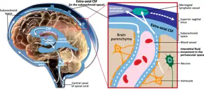 10. 1 2 Plog BA, Nedergaard M (January 2018). "The Glymphatic System in Central Nervous System Health and Disease: Past, Present, and Future". Annual Review of Pathology. 13: 379–394. doi:10.1146/annurev-pathol-051217-111018. PMC 5803388. PMID 29195051.