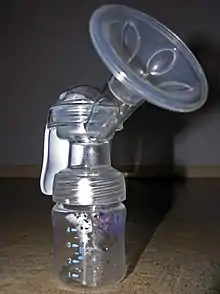 Breastfeeding, also known as nursing, is the feeding of babies and young children with milk from a woman's breast.[1] Health professionals recommend that breastfeeding begin within the first hour of a baby's life and continue as often and as much as the baby wants.[2][3] During the first few weeks of life babies may nurse roughly every two to three hours, and the duration of a feeding is usually ten to fifteen minutes on each breast.[4] Older children feed less often.[5] Mothers may pump milk so that it can be used later when breastfeeding is not possible.[1] Breastfeeding has a number of benefits to both mother and baby, which infant formula lacks.[3][6]