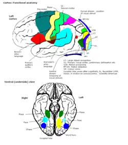 - ↑ Felleman D, Van Essen D (1991). "Distributed hierarchical processing in the primate cerebral cortex". Cerebral Cortex. 1 (1): 1–47. doi:10.1093/cercor/1.1.1-a. PMID 1822724.
