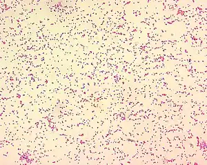Brucella abortus is a Gram-negative bacterium in the family Brucellaceae and is one of the causative agents of brucellosis. The rod-shaped pathogen is classified under the domain Bacteria.[1] The prokaryotic B. abortus is non-spore-forming, non-motile and aerobic.[2]