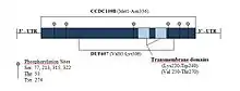 - Transmembrane Region: CCDC109B contains two transmembrane regions, located within DUF607, making it a multipass membrane protein. Since there are two transmembrane regions, both the N-terminus and C-terminus are located on one side of the membrane and have been localized to the cytosolic side of the cell membrane.[6]
