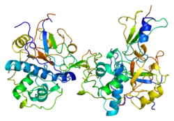 HLA class II histocompatibility antigen gamma chain also known as HLA-DR antigens-associated invariant chain or CD74 (Cluster of Differentiation 74), is a protein that in humans is encoded by the CD74 gene.[5][6] The invariant chain (Abbreviated Ii) is a polypeptide which plays a critical role in antigen presentation. It is involved in the formation and transport of MHC class II peptide complexes for the generation of CD4+ T cell responses.[7][8] The cell surface form of the invariant chain is known as CD74. CD74 is a cell surface receptor for the cytokine macrophage migration inhibitory factor (MIF).[9]