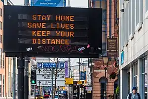 - ↑ "Coronavirus: NI to move to 1m distancing rule from Monday". BBC News. 25 June 2020. Archived from the original on 26 June 2020. Retrieved 26 June 2020.