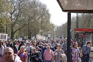 ![]() Anti-lockdown protest march in London, April 2021 | |