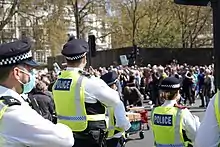 - ↑ "Eight officers injured policing anti-lockdown protest in London". TheGuardian.com. 24 April 2021. Archived from the original on 18 May 2021. Retrieved 28 May 2021.