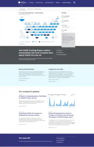 {{cite web}}: CS1 maint: multiple names: authors list (link) - ↑ "Analysis & updates | It's Time: The COVID Tracking Project Will Soon Come to an End". The COVID Tracking Project. Retrieved February 3, 2021.