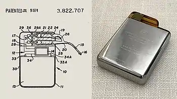 - 1 2 US 3822707, Adducci, Anthony J. & Schwalm, Arthur W., "Metal-enclosed cardiac pacer with solid-state power source", published 1974-07-09, issued 1972-04-17, assigned to Cardiac Pacemekers Inc.