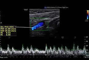 - 1 2 3 4 5 Lee W (January 2014). "General principles of carotid Doppler ultrasonography". Ultrasonography. 33 (1): 11–17. doi:10.14366/usg.13018. PMC 4058969. PMID 24936490.