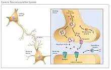 ADHD presents with reduced size, functional connectivity and activation[40] as well as low noradrenergic and dopaminergic functioning[41][42] in brain regions and networks crucial for executive functioning and self-regulation.[40][43][44] Typically, a number of genes are involved, many of which directly affect brain functioning and neurotransmission.[40] Those involved with dopamine include DAT, DRD4, DRD5, TAAR1, MAOA, COMT, and DBH.[45][46][47] Other genes associated with ADHD include SERT, HTR1B, SNAP25, GRIN2A, ADRA2A, TPH2, and BDNF.[48] A common variant of a gene called latrophilin 3 is estimated to be responsible for about 9% of cases and when this variant is present, people are particularly responsive to stimulant medication.[49] The 7 repeat variant of dopamine receptor D4 (DRD4–7R) causes increased inhibitory effects induced by dopamine and is associated with ADHD. The DRD4 receptor is a G protein-coupled receptor that inhibits adenylyl cyclase. The DRD4–7R mutation results in a wide range of behavioural phenotypes, including ADHD symptoms reflecting split attention.[50] The DRD4 gene is both linked to novelty seeking and ADHD. The genes GFOD1 and CDH13 show strong genetic associations with ADHD. CHD13's association with ASD, schizophrenia, bipolar disorder, and depression make it an interesting candidate causative gene.[51] Another candidate causative gene that has been identified is ADGRL3. In zebrafish, knockout of this gene causes a loss of dopaminergic function in the ventral diencephalon and the fish display a hyperactive/impulsive phenotype.[51]