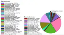 In addition to bacteria, some viruses have also been identified in whale exhaled breath. Among the most abundant bacteriophages were the Siphoviridae and Myoviridae, while among the viral families there were small single-stranded DNA viruses (ss), in particular the Circoviridae, members of the Parvoviridae , and a family of RNA viruses, the Tombusviridae.[16]