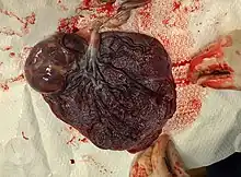 | Placenta with an especially large 10cm chorioangioma | |