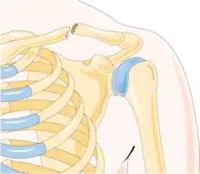 16. 1 2 Malik S, Chiampas G, Leonard H (November 2010). "Emergent evaluation of injuries to the shoulder, clavicle, and humerus". Emergency Medicine Clinics of North America. 28 (4): 739–63. doi:10.1016/j.emc.2010.06.006. PMID 20971390.
