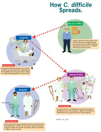 - ↑ "Clostridium difficile Infection Information for Patients | HAI | CDC". www.cdc.gov. Archived from the original on 16 December 2016. Retrieved 18 December 2016.