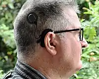 A cochlear implant (CI) is a surgically implanted prosthesis that provides a person, who has moderate-to-profound sensorineural hearing loss, with some ability to hear. Together with therapy, they may allow for improved speech understanding in both quiet and noisy environments.[1][2] Through everyday listening and auditory training, cochlear implants allow both children and adults to learn to interpret those signals as speech and sound.[3][4][5]
