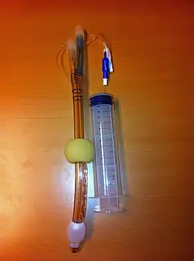 The Combitube—also known as the esophageal tracheal airway or esophageal tracheal double-lumen airway—is a blind insertion airway device (BIAD) used in the pre-hospital and emergency setting.[1] It is designed to provide an airway to facilitate the mechanical ventilation of a patient in respiratory distress.