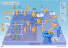 - ↑ Atkinson JP (2009). "Complement system". In Firestein GS, Budd RC, Harris Jr ED, McInnes IB, Ruddy S, Sergent JS (eds.). Kelley's Textbook of Rheumatology. Philadelphia, PA: Saunders/Elsevier. pp. 323–336. ISBN 978-1-4160-3285-4.