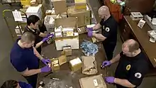 U.S. Food and Drug Administration agents inspect packages for illegal drug shipments at an international mail facility in New York.