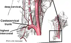 | Branches | Deep cervical artery and Superior intercostal artery |