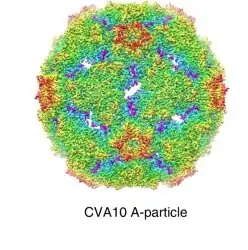 - ↑ Ren J, Wang X, Zhu L, Hu Z, Gao Q, Yang P, et al. (October 2015). "Structures of Coxsackievirus A16 Capsids with Native Antigenicity: Implications for Particle Expansion, Receptor Binding, and Immunogenicity". Journal of Virology. 89 (20): 10500–11. doi:10.1128/JVI.01102-15. PMC 4580203. PMID 26269176.