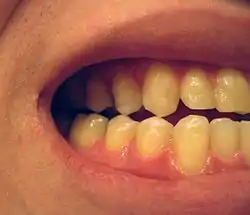 A cusp is an occlusal or incisal eminence on a tooth. Canine teeth, otherwise known as cuspids, each possess a single cusp, while premolars, otherwise known as bicuspids, possess two each. Molars normally possess either four or five cusps. In certain populations the maxillary molars, especially first molars, will possess a fifth cusp situated on the mesiolingual cusp known as the Cusp of Carabelli.