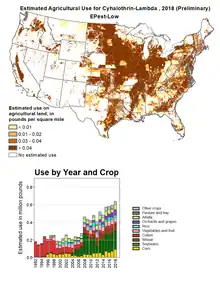 - ↑ US Geological Survey (2021-10-12). "Estimated Agricultural Use for λ-cyhalothrin, 2018". Retrieved 2022-01-17.