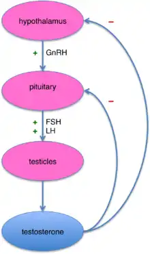- ↑ Dwyer AA, Phan-Hug F, Hauschild M, Elowe-Gruau E, Pitteloud N (July 2015). "TRANSITION IN ENDOCRINOLOGY: Hypogonadism in adolescence". European Journal of Endocrinology. 173 (1): R15–24. doi:10.1530/EJE-14-0947. PMID 25653257.