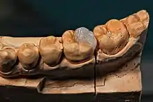 The prepared tooth, ready for placement of restorative materials, is generally called a tooth preparation. Materials used may be gold, amalgam, dental composites, glass ionomer cement, or porcelain, among others.