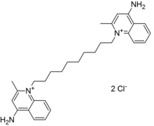 - ↑ Mendling W, Weissenbacher ER, Gerber S, Prasauskas V, Grob P (March 2016). "Use of locally delivered dequalinium chloride in the treatment of vaginal infections: a review". Archives of Gynecology and Obstetrics. 293 (3): 469–484. doi:10.1007/s00404-015-3914-8. PMC 4757629. PMID 26506926.