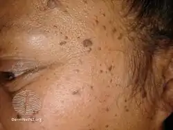 - ↑ Kauh YC, McDonald JW, Rapaport JA, Ruschak PJ, Luscombe HA. A surgical approach for dermatosis papulosa nigra Archived 2017-11-01 at the Wayback Machine. Int J Dermatol. Dec 1983;22(10):590-2.