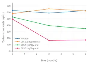 DES has at least three mechanisms of action in the treatment of prostate cancer.[70] It suppresses gonadal androgen production and hence circulating androgen levels due to its antigonadotropic effects; it stimulates hepatic sex hormone-binding globulin (SHBG) production, thereby increasing circulating levels of SHBG and decreasing the free fraction of testosterone and dihydrotestosterone (DHT) in the circulation; and it may have direct cytotoxic effects in the testes and prostate gland.[70] DES has also been found to decrease DNA synthesis at high doses.[70]