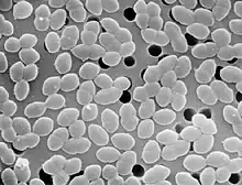 Examples of gram-negative diplococci are Neisseria spp. and Moraxella catarrhalis. Examples of gram-positive diplococci are Streptococcus pneumoniae and Enterococcus spp.[1][2] Presumably, diplococcus has been implicated in encephalitis lethargica.[3]