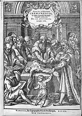 A dissection in Realdo Colombo's De Re Anatomica, 1559