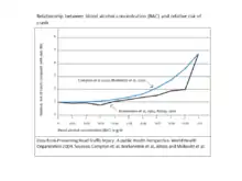 Studies show that a high BAC increases the risk of collisions whereas it is not clear if a BAC of 0.01–0.05% slightly increases or decreases the risk.[28][29]