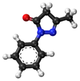- ↑ Bailly C, Hecquet PE, Kouach M, Thuru X, Goossens JF (May 2020). "Chemical reactivity and uses of 1-phenyl-3-methyl-5-pyrazolone (PMP), also known as edaravone". Bioorganic & Medicinal Chemistry. 28 (10): 115463. doi:10.1016/j.bmc.2020.115463. PMID 32241621. S2CID 214766793.