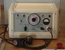 ECT soon replaced metrazol therapy all over the world because it was cheaper, less frightening and more convenient.[20] Cerletti and Bini were nominated for a Nobel Prize but did not receive one. By 1940, the procedure was introduced to both England and the US. In Germany and Austria, it was promoted by Friedrich Meggendorfer. Through the 1940s and 1950s, the use of ECT became widespread. At the time the ECT device was patented and commercialized abroad, the two Italian inventors had competitive tensions that damaged their relationship.[21] In the 1960s, despite a climate of condemnation, the original Cerletti-Bini ECT apparatus prototype was contended by scientific museums between Italy and the US.[22] The ECT apparatus prototype is now owned and displayed by the Sapienza Museum of the History of Medicine in Rome.[22]